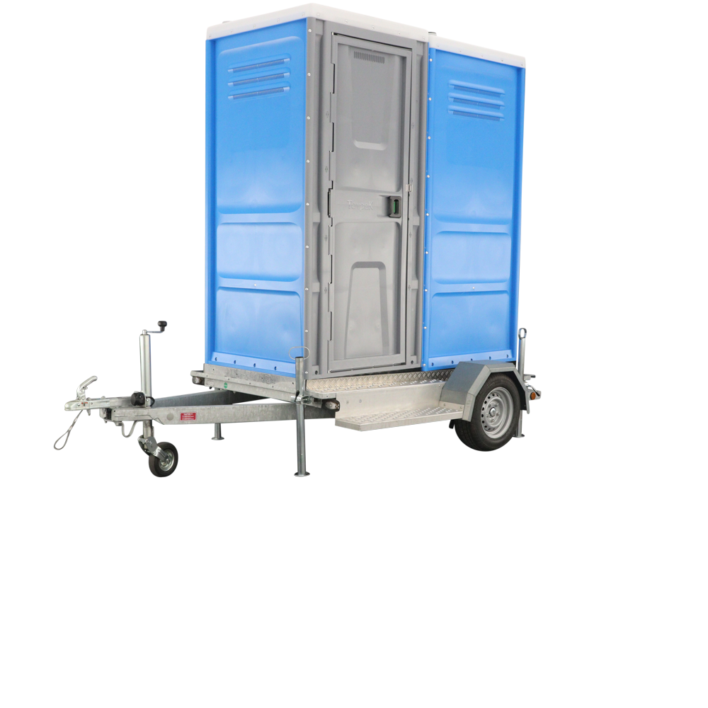 Our double toilet trailer is constructed using high-quality materials and complies with inspection standards for all of Europe. It features two steps and four stabilizing legs for enhanced stability. Specifically designed for our Toypek cabin, the toilet cabins are securely attached to the double toilet trailer using four aluminum plates and M10 X 80 bolts with lock nuts. The double toilet trailer is easy to maintain, suitable for various terrains, and requires minimal upkeep.The toilets trailers are equipped with: