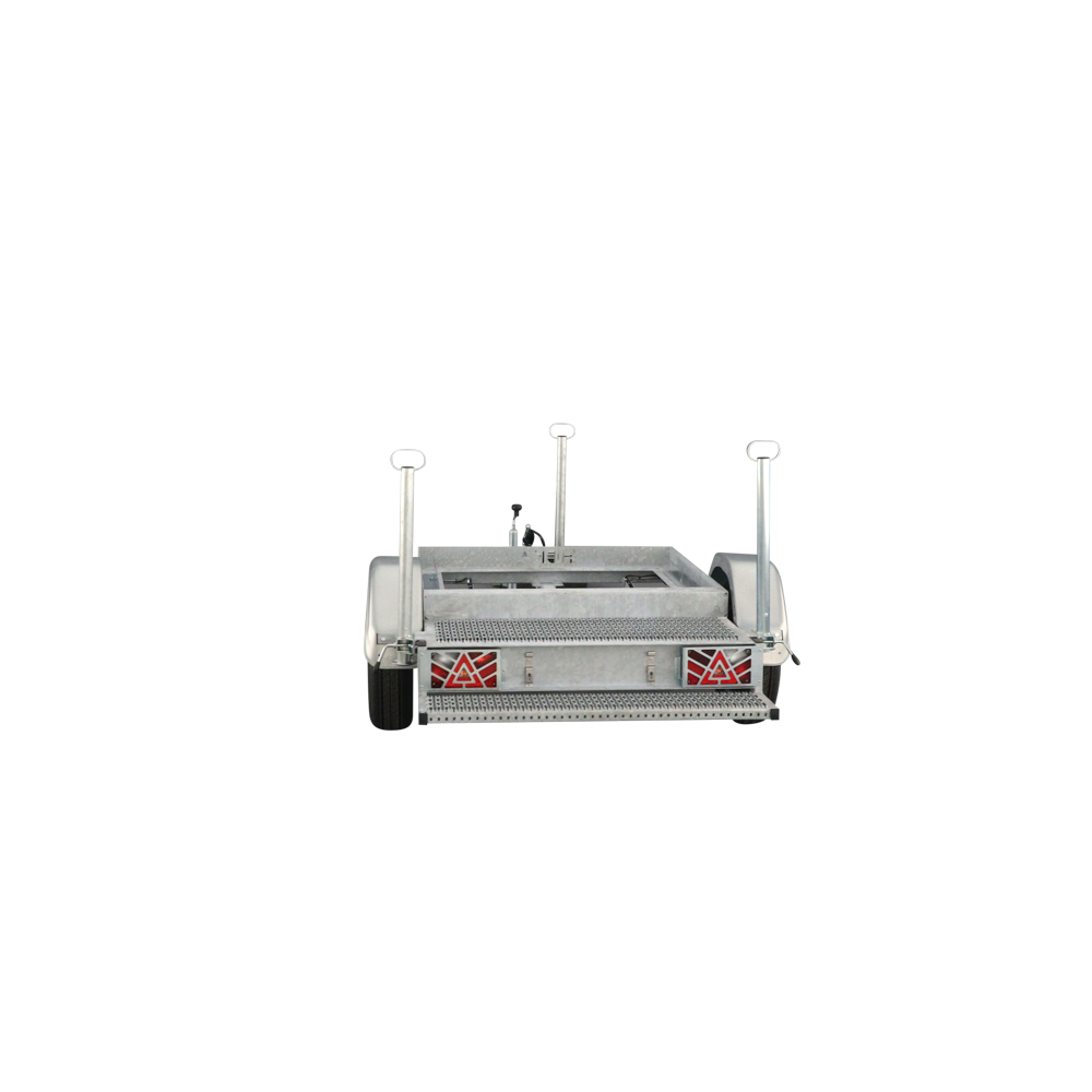 The Type 1 single toilet trailer is constructed using high-quality materials. It comes with a COC statement, allowing its usage throughout Europe. The Type 1 single toilet trailer features 2 or 3 stabilizing legs and a grid-step ladder that is easy to clean. The portable toilet trailers have been specifically designed to accommodate our Toypek cabins. The cabins are securely attached to the Type 1 single portable toilets trailer using corner lines, aluminum plates, bolts, and lock nuts. The trailer is equipped with eyes for securing the cabins with tension straps, ensuring they remain firmly attached. Our toilet trailers are easy to clean, require minimal maintenance, and can be used on any terrain!